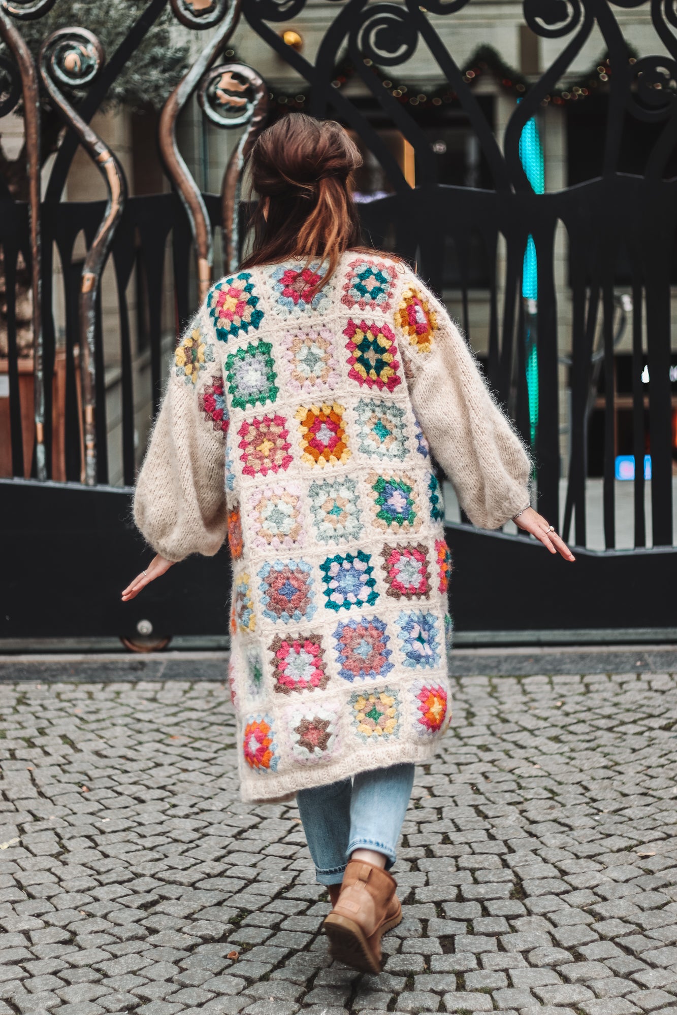 Gecombineerd brei- & haakpatroon GRANNY SQUARE CARDIGAN - oversized chunky vest met wijde mouwen