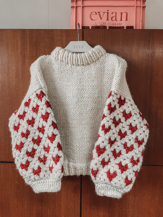 Gecombineerd brei- & haakpatroon HARTJESTRUI - oversized chunky trui met hartjespatroon